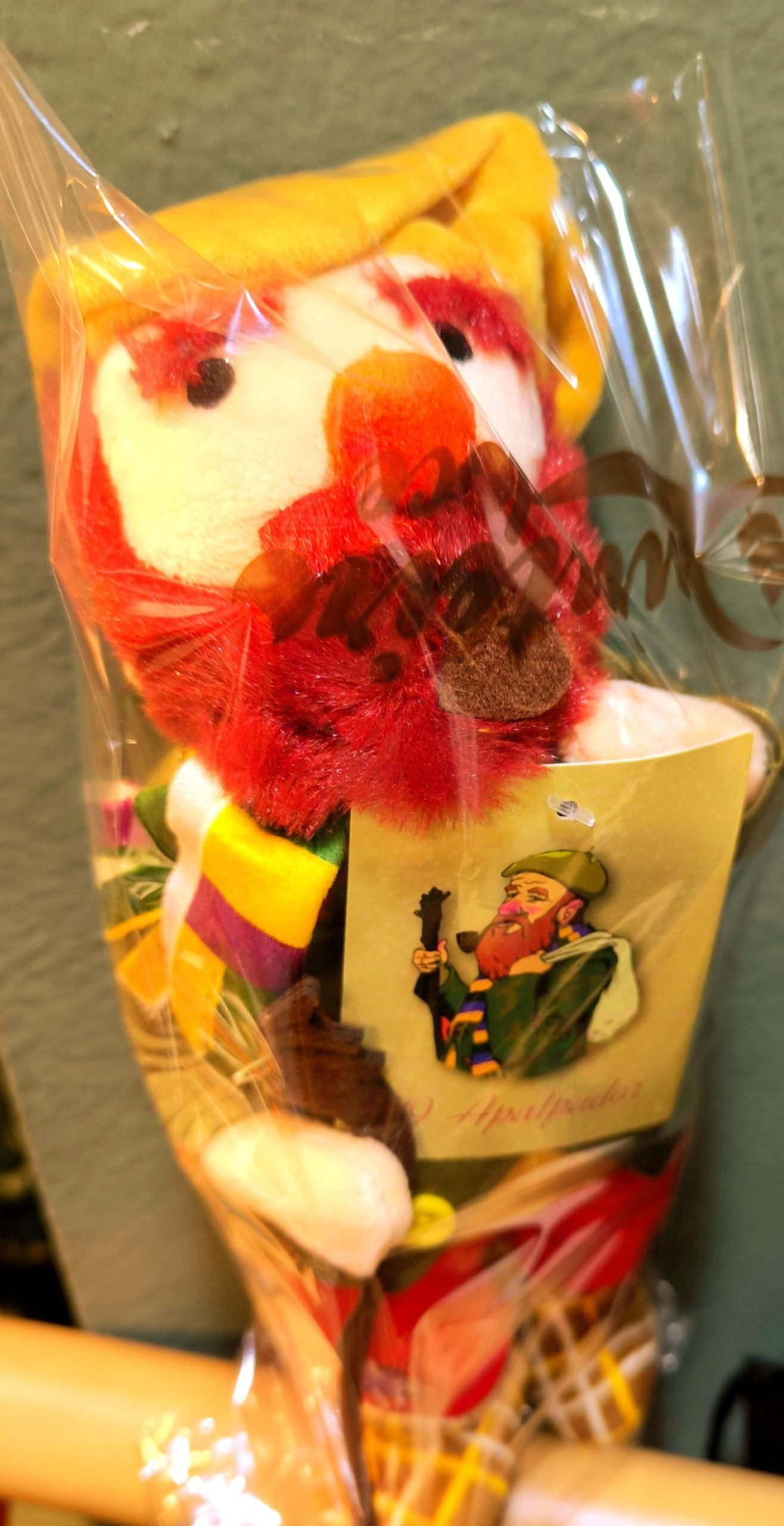 Peluche O Apalpador. En su bolsa lleva unos bombones de chocolate.